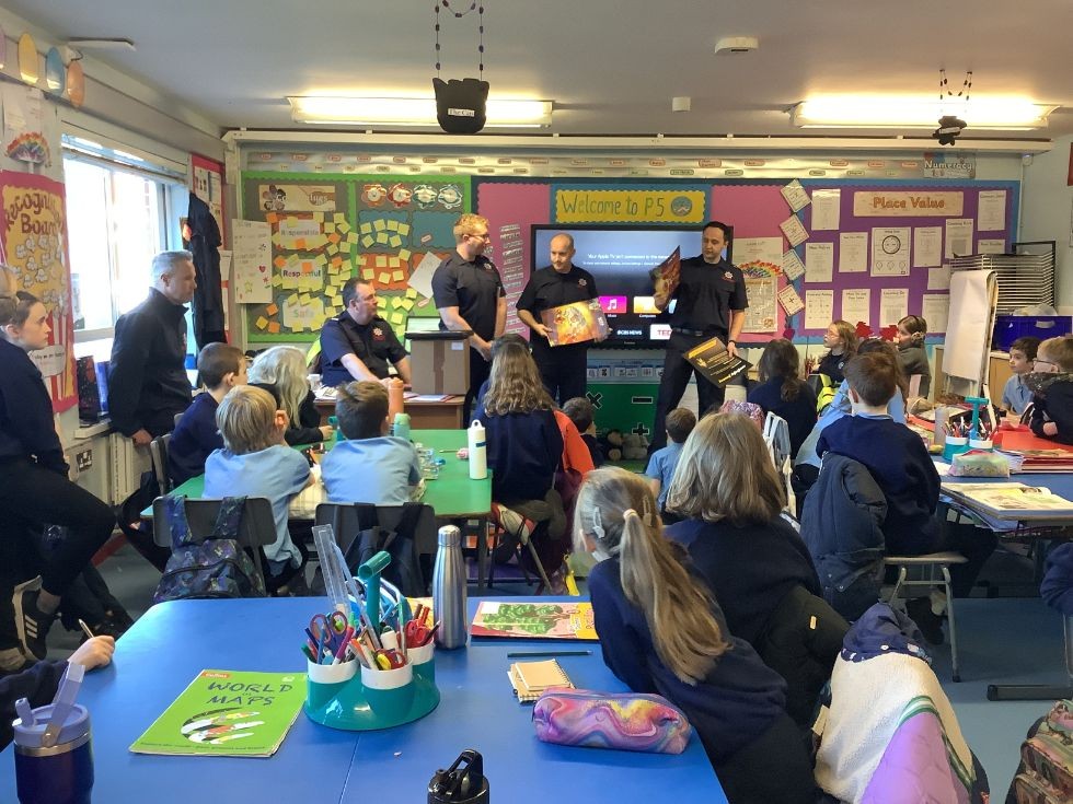 On Monday 24th November, P5 had their annual Fire Safety Talk and visit from the local fire brigade. They learnt about keeping safe at home and also got to have a look around a fire engine.